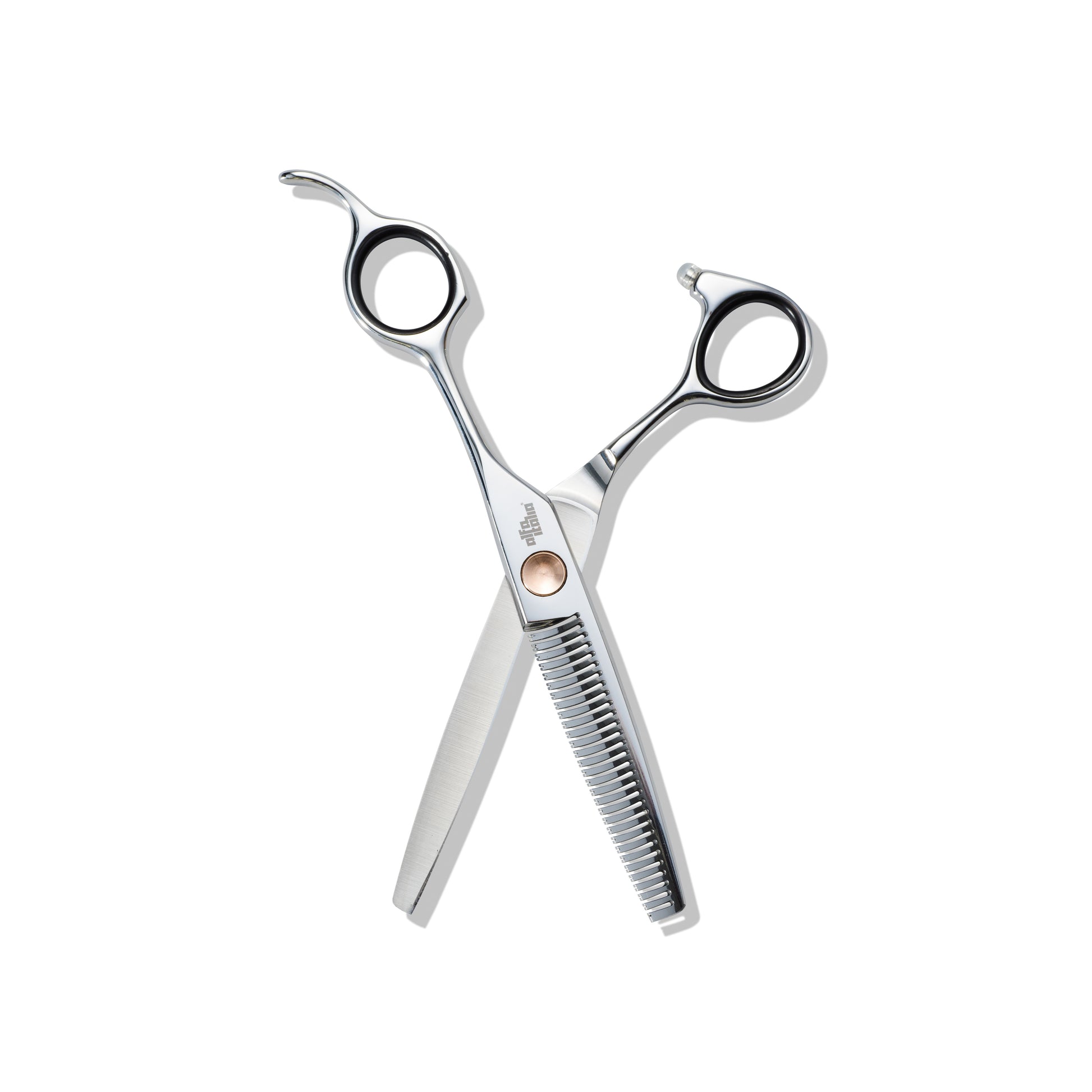 The Alfa Italia Sessione Rosa Soft Cut Thinning and Blending Scissor is designed to never show a cut mark, to cut the hair very short, to blend shorter to longer sections of hair and to evaporate/thin bulk and thickness of hair. This professional hairdresser’s scissor for thinning is a key ingredient of a hairdresser’s toolkit. It replaces the need for the old-fashioned, thinning scissor where the thinning teeth are traditionally found on the upper blade. We have designed these thinning scissor with the teeth on the lower blade to allow the hair to flow naturally over the teeth to ensure a flawless, clean finish.